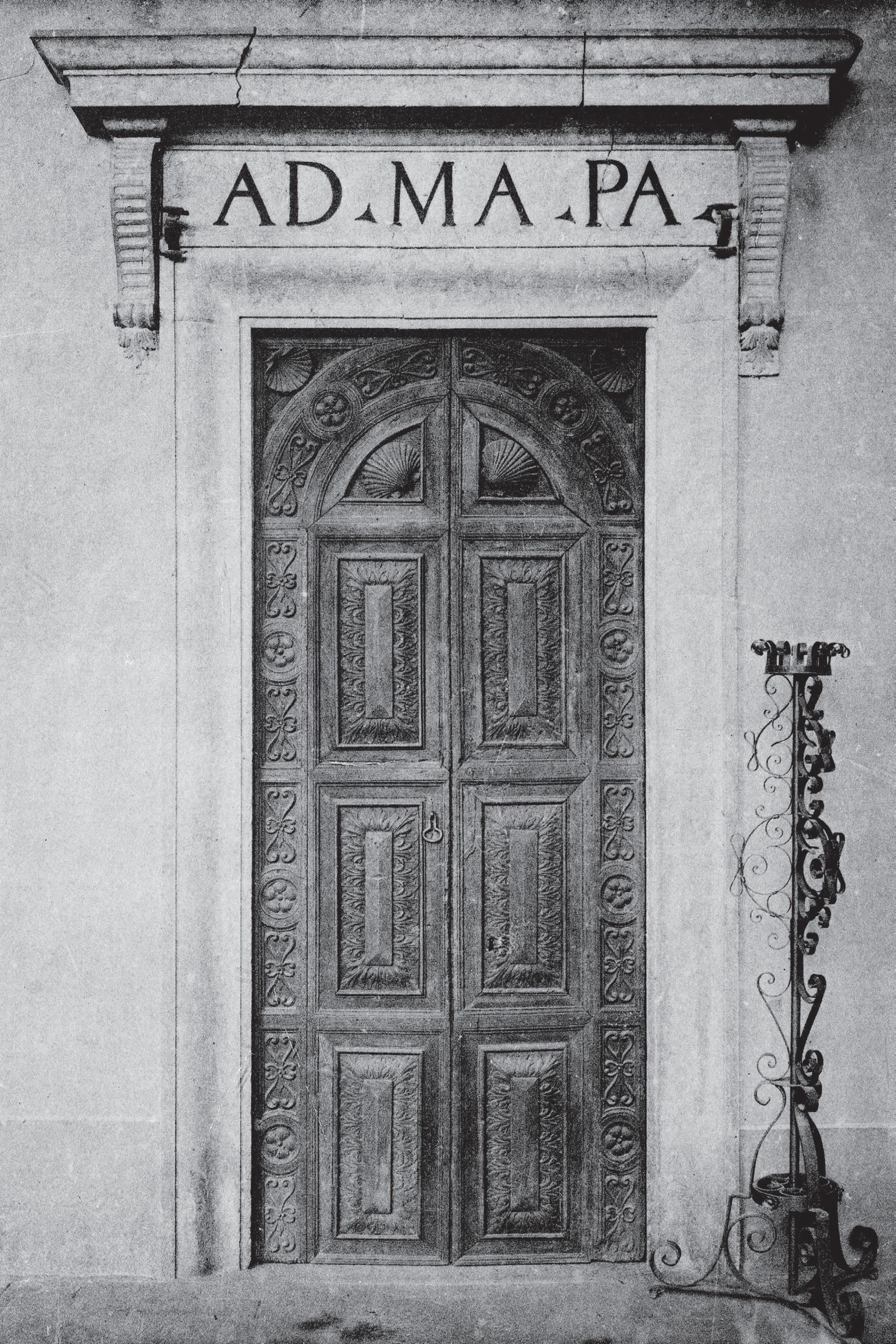 bozze ovvero bugne, non rozze ma pulite, e con bellissimi ornamenti»5. Al piano superiore, tra semipilastri ugualmente a bozze e con capitelli ionici, sette finestre trabeate e centrate su gli archi del porticato sottostante, con il solo ornamento delle sigle dell’ordinatore ad.ma.pa e la data mdl sulla finestra centrale: una data, qui occorre dirlo, assai precoce rispetto a quanto ci è noto della attività di Antonio Campi.