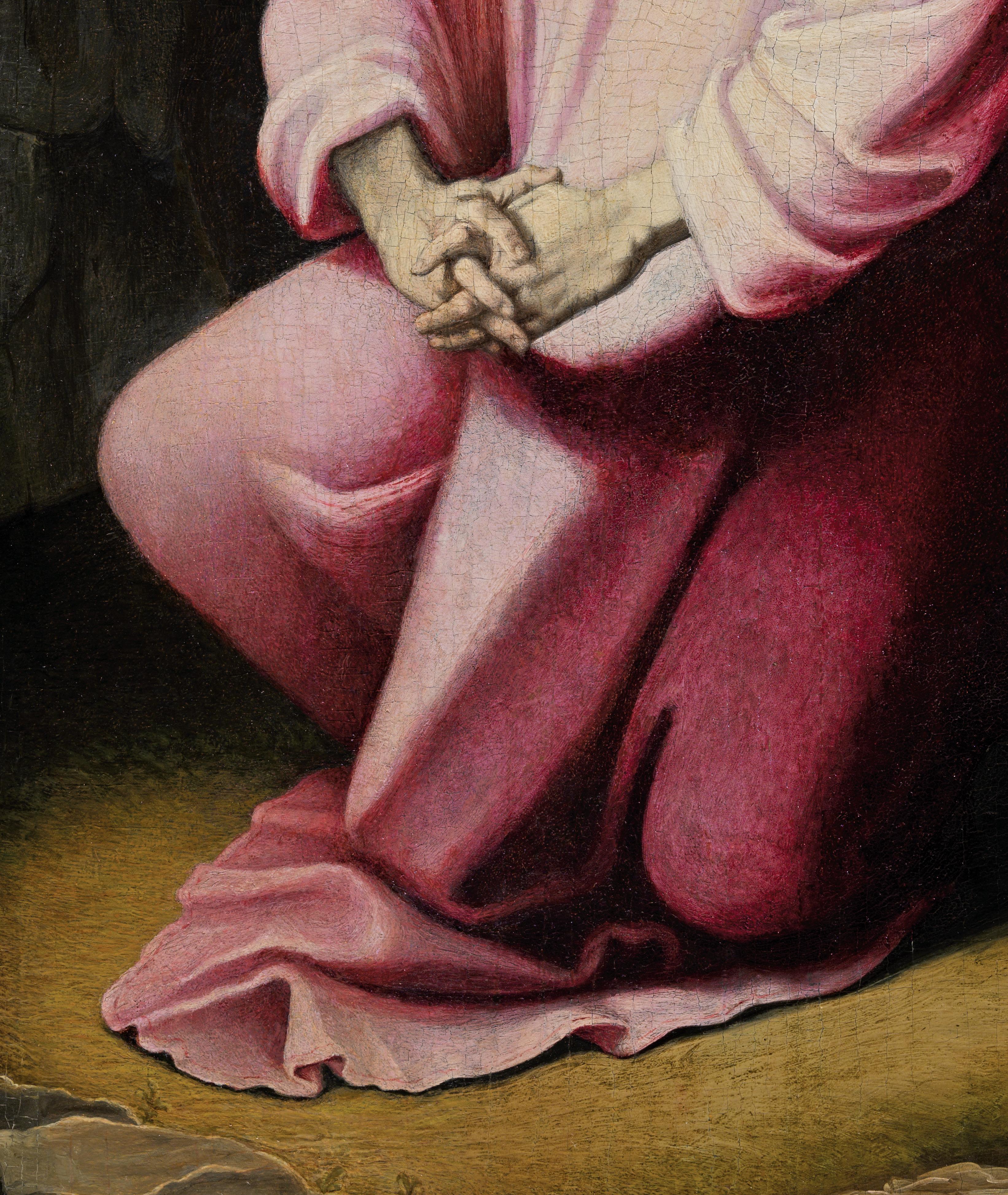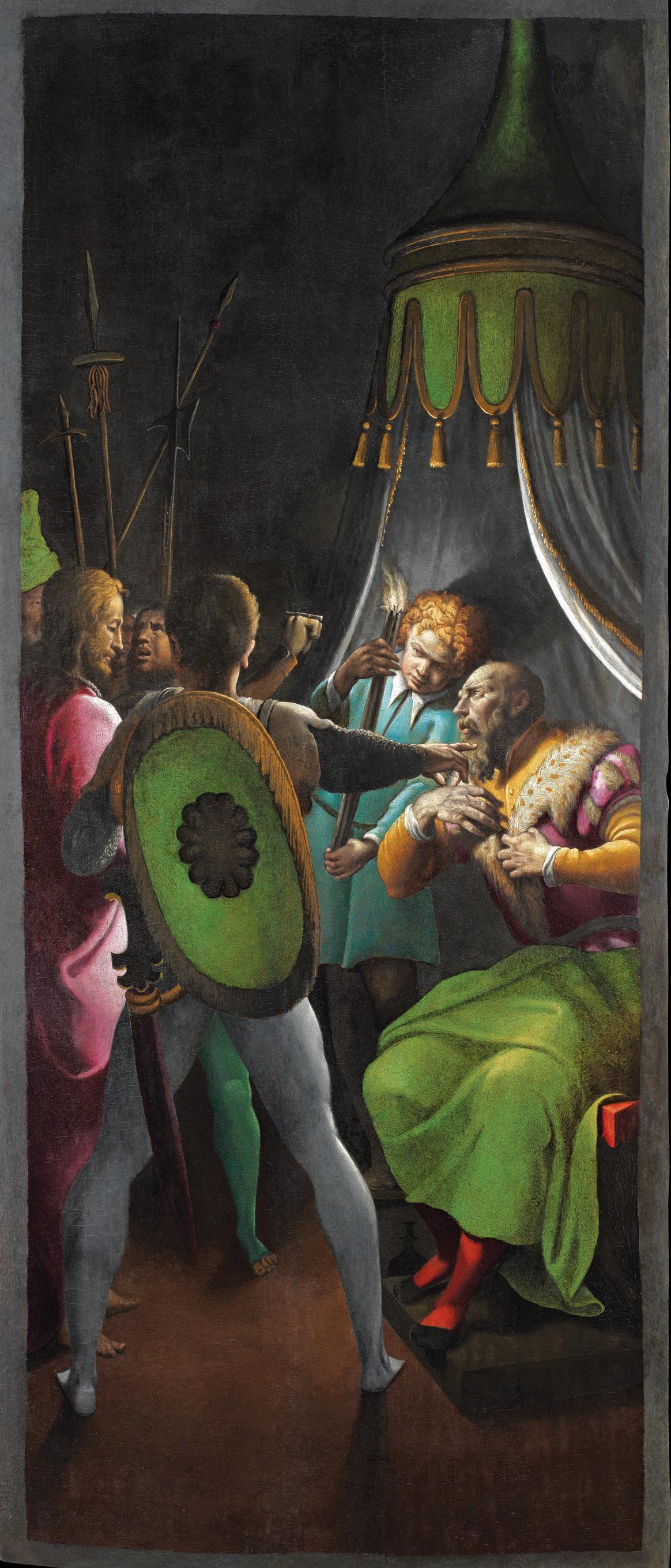 Acquisite dallo Stato nel 1957, evitandone l’esportazione, e assegnate alle collezioni della Galleria Sabauda con un’attribuzione a pittore fiammingo intorno alla metà del Cinquecento, le due opere sono state riconosciute da Marco Tanzi come significative testimonianze della pittura preziosa, elegante e splendente dell’artista cremonese, nelle quali sono ben visibili i debiti verso la maniera del Nord e le invenzioni düreriane. La provenienza ora sicura dalla cappella Pallavicino dà conto anche dello stato conservativo in cui un tempo dovevano trovarsi le opere, trattandosi di due di quelle tre tavole che nel 1802 l’abate Ramon Ximenes ricordava tolte dall’oratorio a causa dell’umidità del luogo e dell’incuria in cui era tenuto. Interventi mirati sui supporti lignei hanno permesso in questi anni, e ancora in occasione della mostra, di mettere in sicurezza le opere e di restituire la loro sfavillante cromia e l’originaria stabilità.