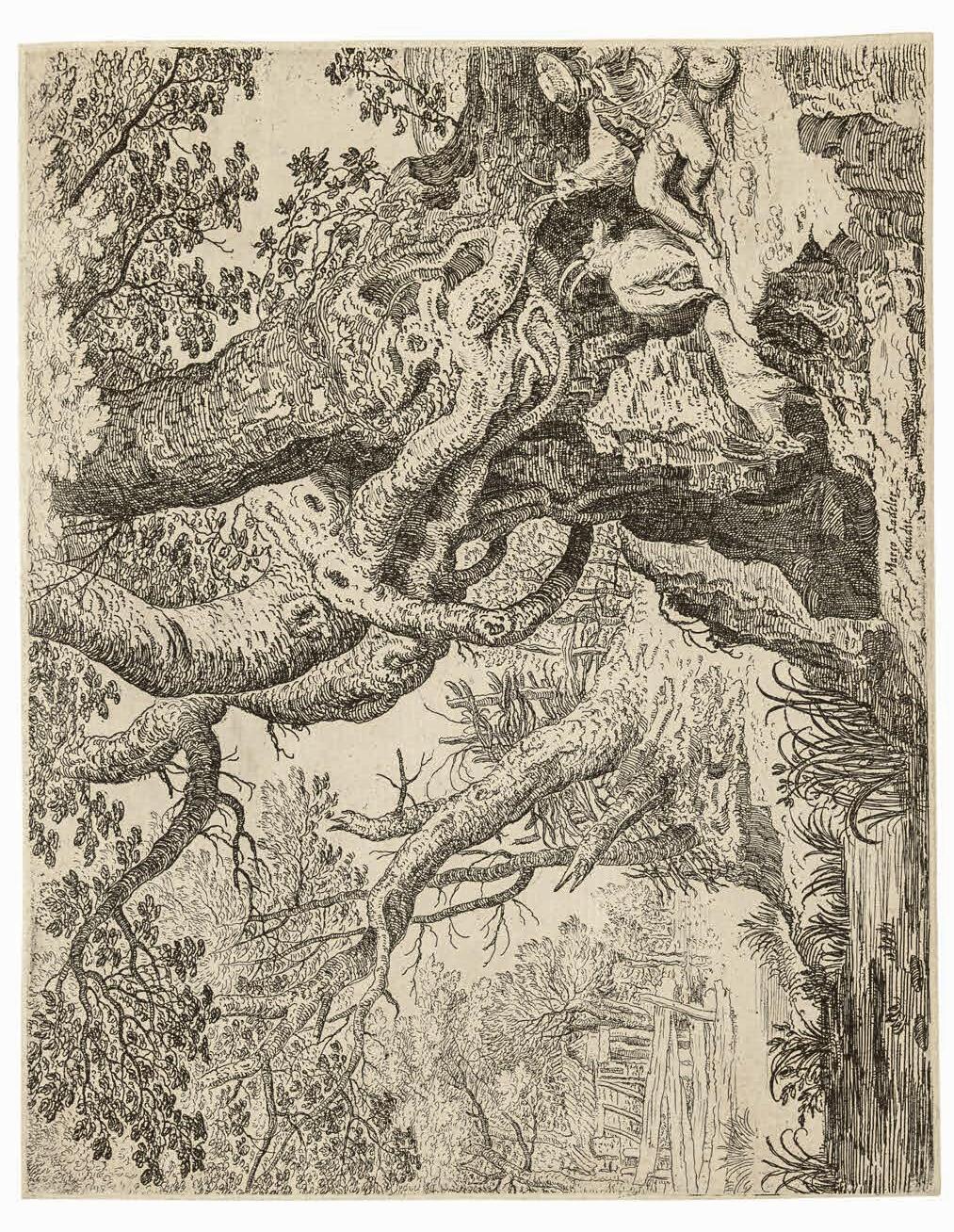 Hochinteressante Zusammenstellung von acht bis anhin großenteils unbeschriebenen Zustandsdrucken aus dem F. E. Weirotter speziell gewidmeten Konvolut der Sammlung der Fürsten zu Liechtenstein. Nach (Neu-)Ordnung der Druckzustände erlaubt sie einen selten, intensiven Einblick in das gleichsam tastend experimentelle Arbeiten Weirotters an der Kupferplatte dieser, vorwiegend mit der Kaltnaldel radierten Komposition, die Winterberg noch in Unkenntnis der spiegelbildlichen Signatur aus dem Oeuvre des Künstlers meinte ausscheiden zu müssen.