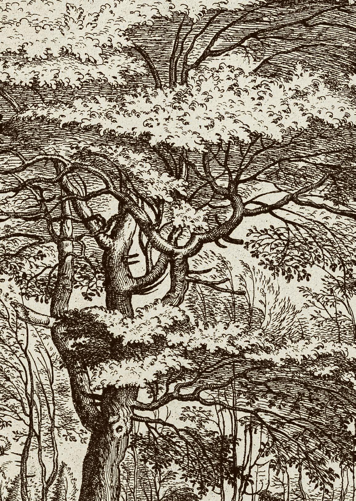 The story of Erysichthon […] This monarch scorns the gods, and brought no incense, no offerings to their altars, and one legend has it he once attacked the sacred grove of Ceres, violent with steel against these ancient trees, among which stood an oak, centuries old, a grove in itself, and round about it hung ex-votos, woolen fillets, wreaths of flowers, and often underneath it dryads, dancing, paid homage; it would take a dozen of them, or even more, linking their hands together, to circle the great trunk. […]. But Erysichthon […] gave orders to fell the sacred oak […]. And all the dryad sisters […] went mourning […] to Ceres […] Punish him, they prayed, punish this impious Erysichthon […] Ceres plants hunger in his hollow veins […] the more he wolfs, the more he wants, insatiable as ocean […] Finally, there was nothing, only his own flesh for his greedy teeth to seize […] and the wretch consumed his body, feeding upon a shrinking self.