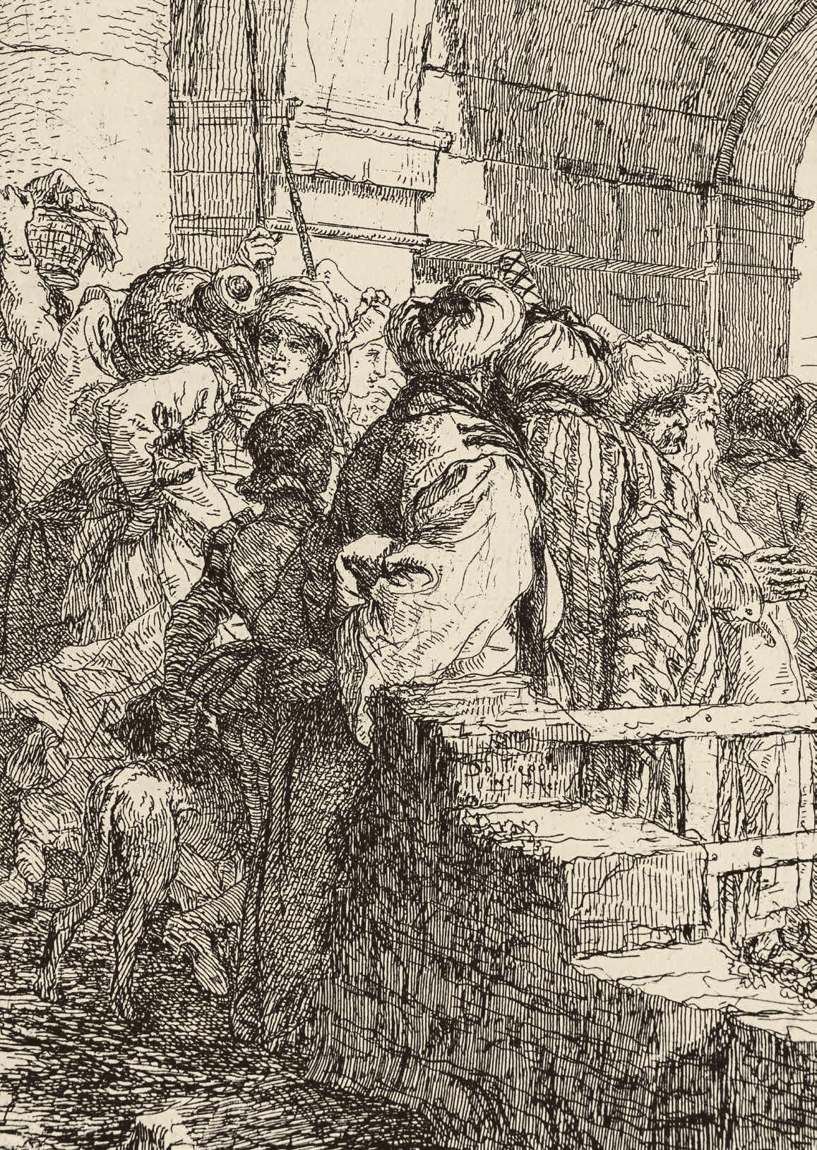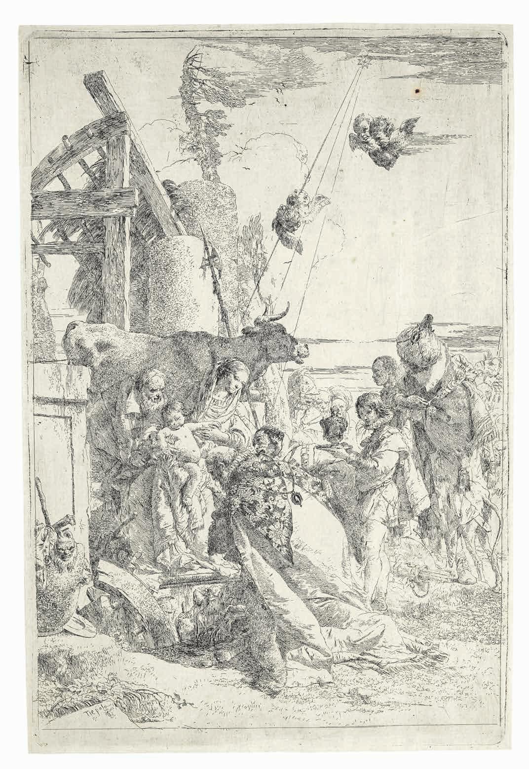 Die Komposition gehört zu den frühen Clair-obscur-Holzschnitten des Künstlers. Sie entstand nach der Rückkehr Zanettis von seiner zweijährigen >Grand Tour<, die ihn über Paris 1721 nach London geführt hatte. Die Gruppe von 130 Zeichnungen Parmigianinos, die er aus der Sammlung des Earl of Arundel erwerben konnte, wurden für ihn ein unerschöpflicher Quell der Inspiration. Sie regten ihn an, sich intensiv mit den italienischen Chiaroscuro-Holzschnitten des 16. Jahrhunderts zu beschäftigen, für die sie mitunter einst als Vorlagen entstanden waren. Für seine eigenen virtuosen Reproduktionen belebte Zanetti die Technik glanzvoll neu.