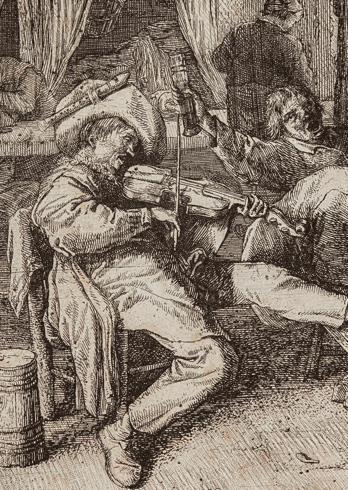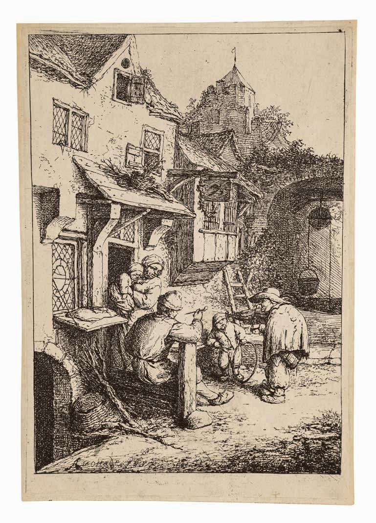 Die reizende Darstellung in einem rußig tiefschwarzen, zeitgenössischen Abzug, der den für Wyck typischen très bel effet de clair obscur (Bartsch) wunderbar zur Geltung bringt.