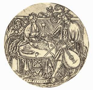 Im Unterschied sowohl zum Meister S als auch zum Meister L arbeitete der Stecher unseres reizvollen Blattes, das wir sonst nicht nachweisen konnten, im winzigen Format seines Tondos jedoch überwiegend mit einfachen, zumeist parallel geführten Strichlagen, die nur gelegentlich durch ganz sparsame Contretaillen akzentuiert werden, sodaß die Lesbarkeit der miniaturhaften, etwas anzüglichen Darstellung immer gewahrt bleibt.