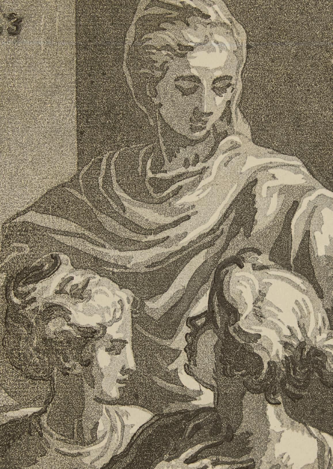 This composition is among the artist’s early chiaroscuro woodcuts. It was executed after Zanetti’s return from his two-year Grand Tour, which took him to London via Paris in 1721. The ensemble of 130 drawings by Parmigianino he was able to acquire from the collection of the Earl of Arundel served him as an inexhaustible source of inspiration. It encouraged his intensive preoccupation with the 16th century Italian chiaroscuro woodcut – for which many of the drawings had served as templates. For his own virtuoso reproductions, Zanetti revived the technique, returning it to its former splendor.