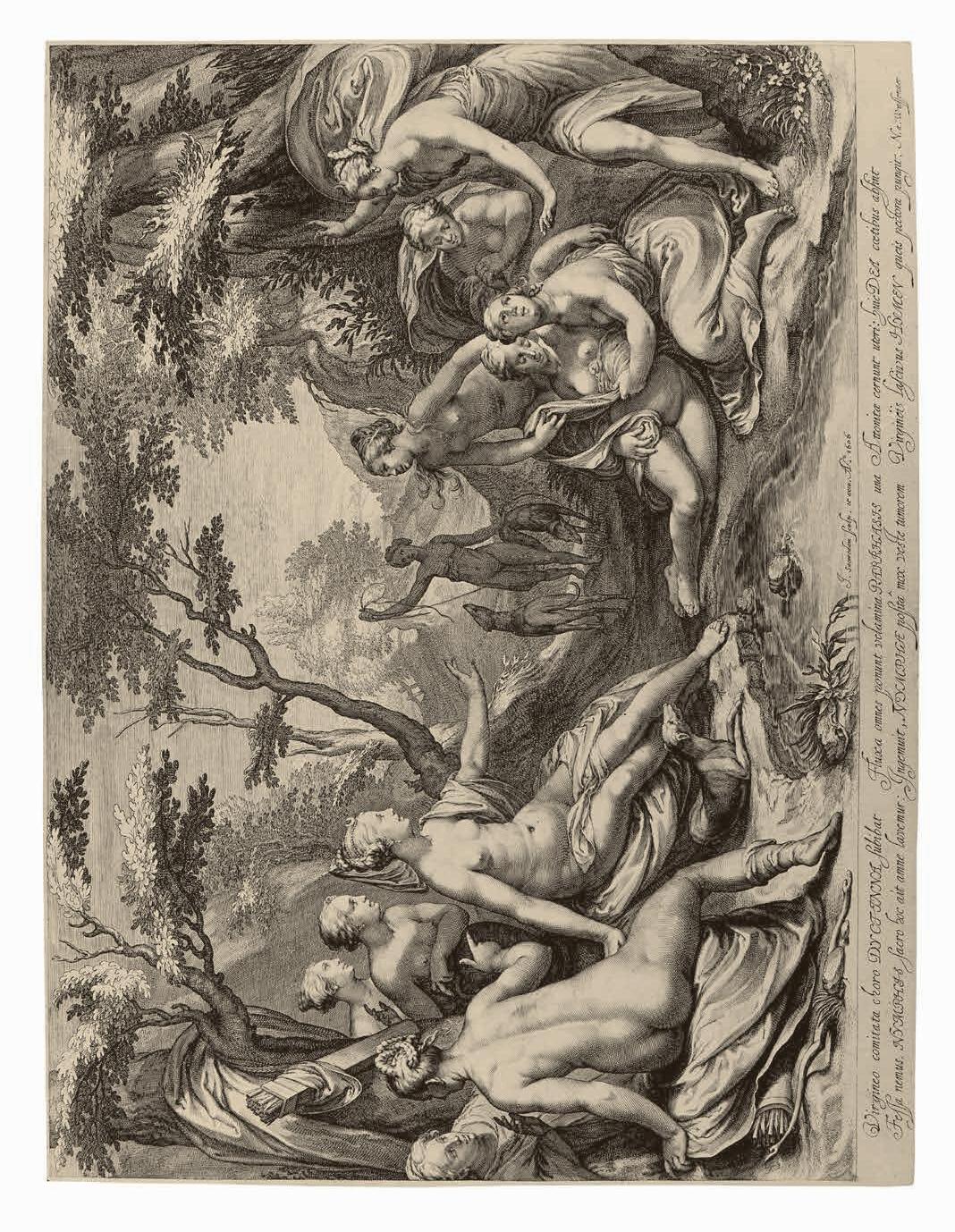 The engraving illustrates a scene from Ovid’s Metamorphoses (Met. VIII, 738-884):