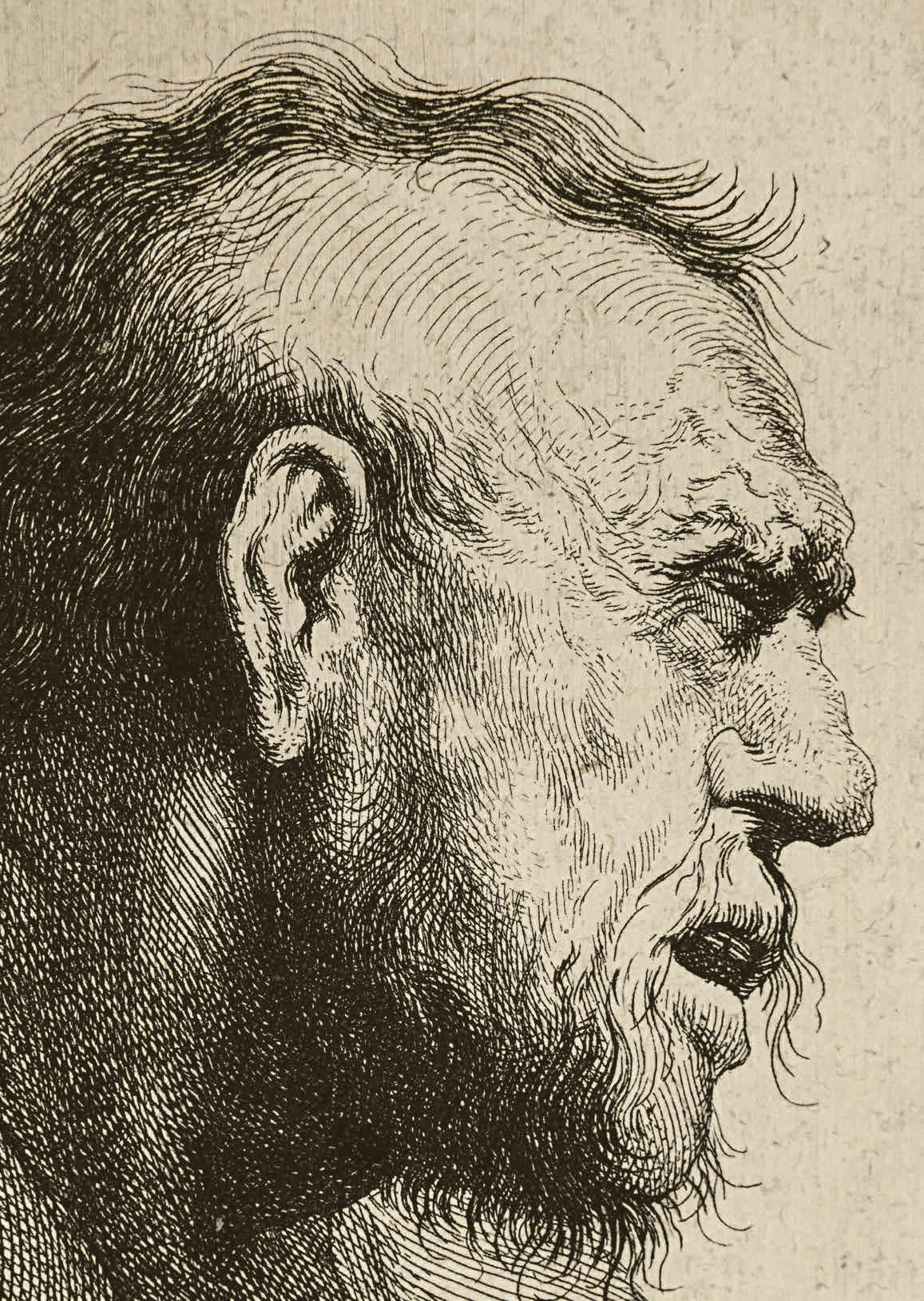 II. The composition remains unaltered, but the intensive burr of the drypoint has been partially polished away, giving the shadowed areas greater transparency.