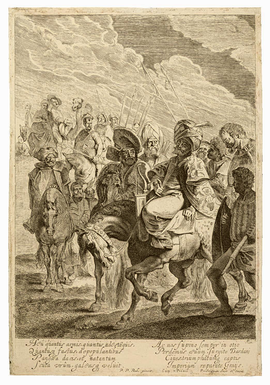 Wie von Bartsch für die ersten Abzüge speziell erwähnt, mit der Widmung an Hugh Howard, einem seiner Londoner Kunstfreunde und Berater, sowie dem Datum 1723.