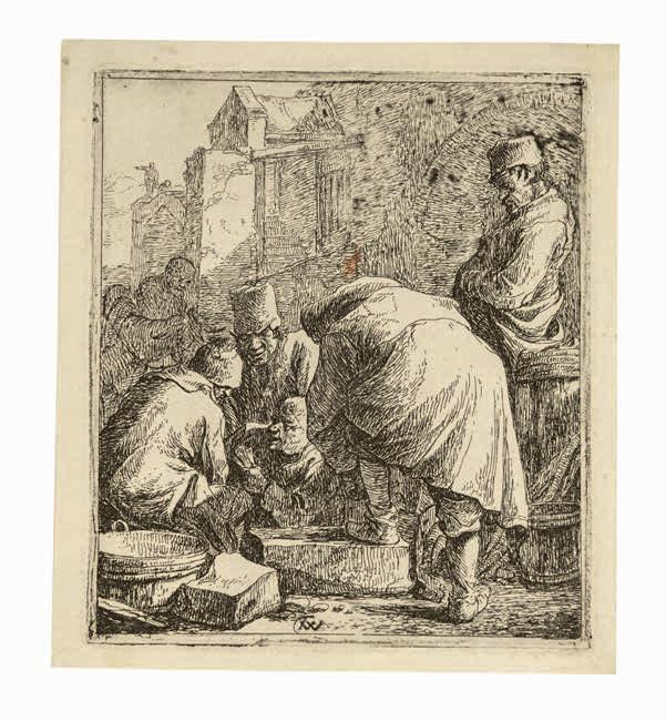 The charming depiction in a sooty, deep black, contemporary impression which brings the très bel effet de clair obscur (Bartsch) that is so typical of Wyck marvelously to the fore.
