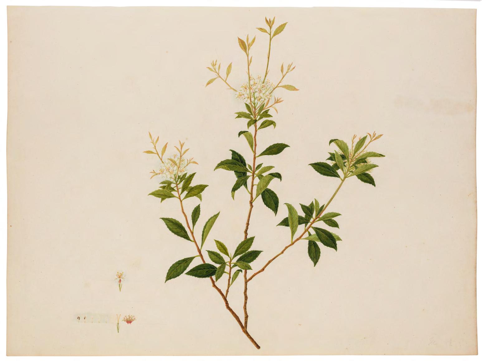 This rich and diverse collection of 47 botanical illustrations represents the astounding floral diversity of China and further afield. The paintings were procured at the request of John Roberts (1739-1810), a Director and Chairman of the East India Company, by Britain’s first plant hunter to reside in China, William Kerr (1779-1814). Correspondence between the East India Company in London and Canton reveals the historical context of the works, and that Kerr employed a local artist, most likely Win Achun. It is exceptionally rare to encounter a named artist from this period and research into Win Achun has been hitherto overlooked. The paintings in this collection had been bound into two albums in London, prior to 1810, when the bookbinder’s partnership ended. Following Roberts’ death in 1810, they were sold at auction by his executors. More recently, in the 1990s, the albums were sold again, and it was revealed that 100 works had been undertaken by Win Achun.2 At some point following this sale, the albums were cut up and the paintings dispersed. Analysing the first group of illustrations in this collection with related studies in the William