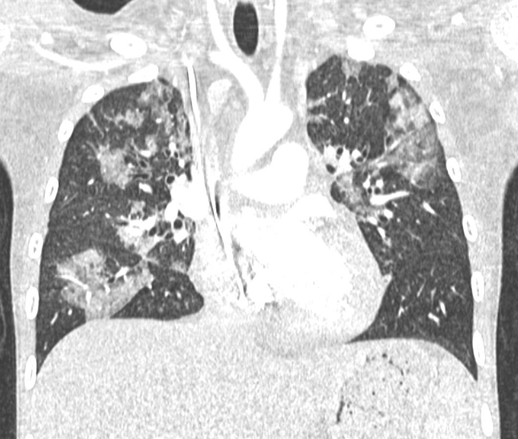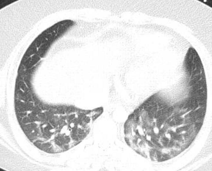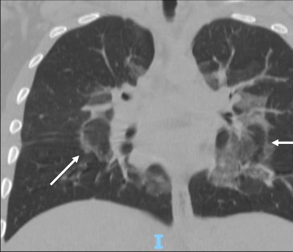 • Bilateral & symmetric GGO +/- consolidation