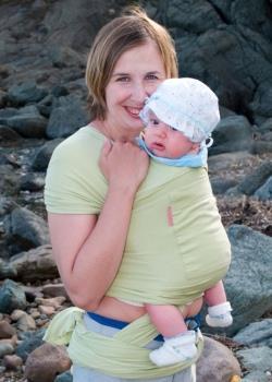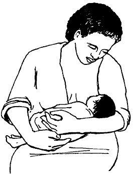 • Hold the baby firmly on the shoulders, not crouched, and keep him close to your body