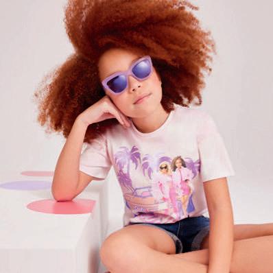 LEFT: Barbie Knot Tee (3–14 years), from £7; Peach Ribbed Sliders, sizes 12–5, £5