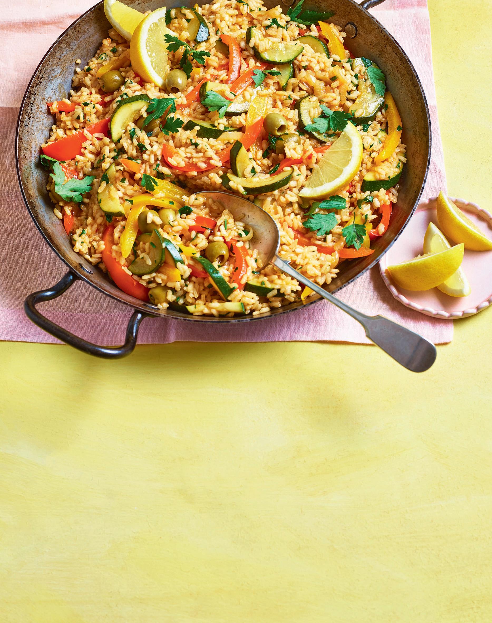 Brighten your week with delicious takes on paella, stir-fry and halloumi