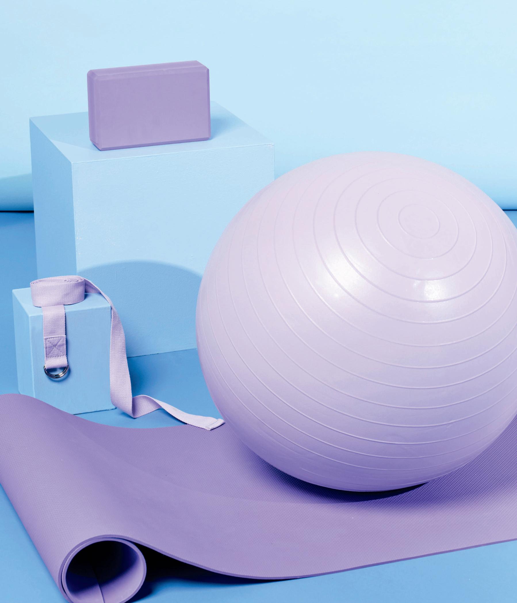 Withregularyogaworkoutsyou cantickoffphysicalfitness, stressreliefandrelaxation.You don’tneedloadsofequipment, either.Yourmovesonthemat willbelimberandlithewith merelyablockforbalance,a strapforstretchandaballfor stability.That’spose powerboosted.