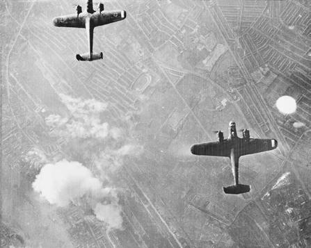 “And now the Battle of Britain was on, and we in the Weald were in it, or rather under it. A.A. guns appeared in various fields. Dog-fights all over our heads, with the dramatic effect of exhausts in the cold upper air making white streaks around the fighters as they swooped and swirled against the blue of the sky. We used to see parachutes descending with the bailed out pilots; bombs were jettisoned around us at night; shrapnel fell.”