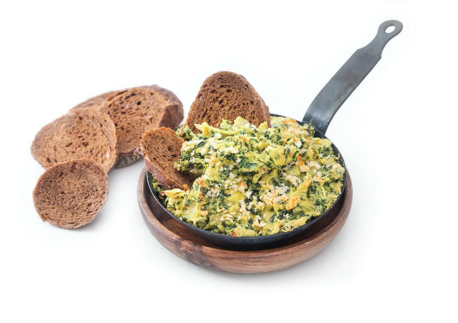 4. Scrape the puree into a large bowl and stir in the spinach and artichoke hearts. Spread in the baking dish and sprinkle with panko, if desired.
