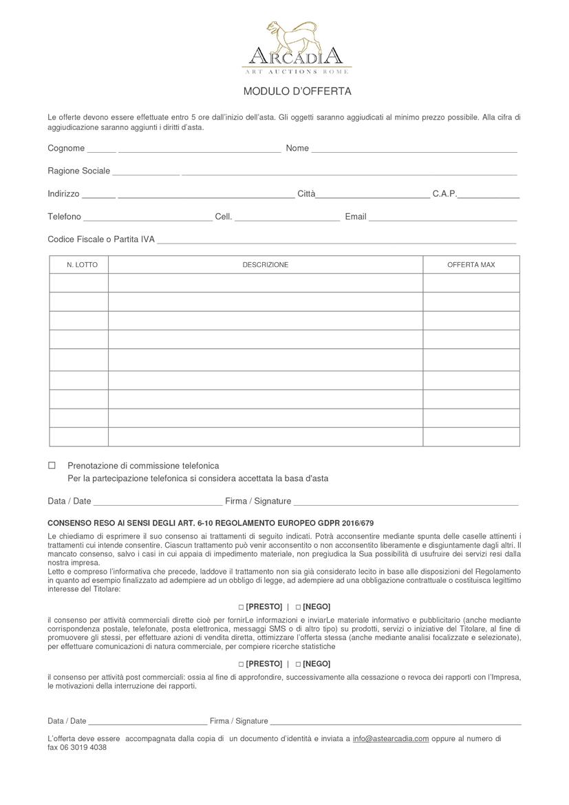 PER PARTECIPARE ALL’ASTA LIVE www.astearcadia.com registrandosi su My Arcadia
