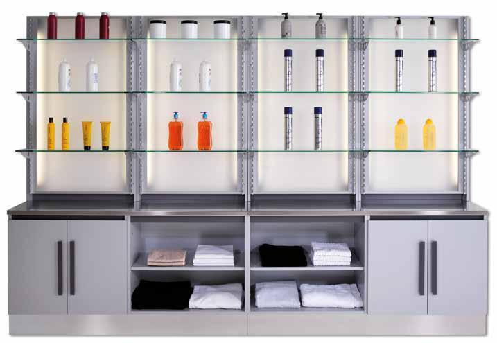 Importante ruolo all’interno del salone. La parete attrezzata è tra gli elementi d’arredo principali della zona expo e zona lavaggio: che abbia funzione espositiva o che contenga oggetti di ogni tipo, contribuisce ad organizzare al meglio il lavoro quotidiano,