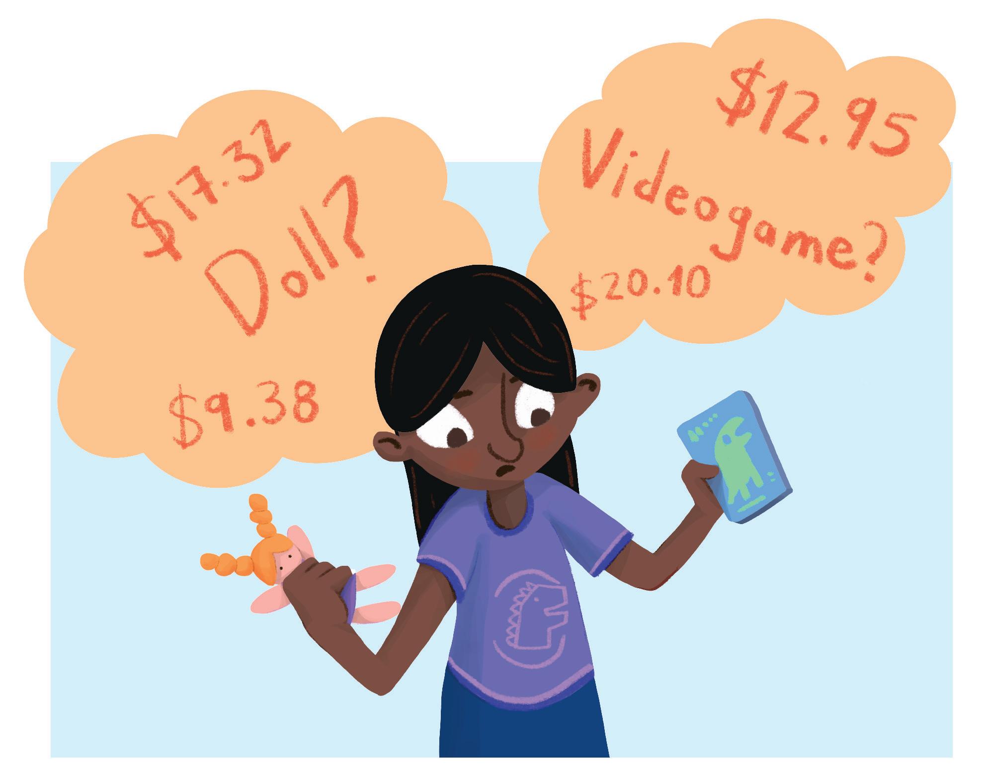 BONUS: To practice mental math, read the prices on the flashcards out loud, but do not show them to the children. Again, ask children if they should round up or round down to get to the nearest whole dollar. Children give a thumbs-up for rounding up or a thumbs-down for rounding down.
