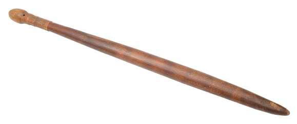 54A. An 18th century treen lacewood snuff grater tapering form with swivel cover fixed with a star headed brass pin, interior with perforated iron plate, length 16cm £150-£250