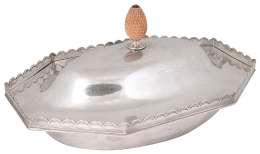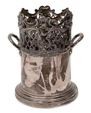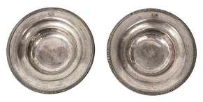 after a design by William Bateman for Rundell, Bridge & Rundell, berried acanthus nozzles and stems fitted with deatchable drip pans with ropetwtist border, on a triform base with three seated patinated bronze swans, on compressed beaded feet (2), height 17cm £200-£300