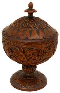 55. A 19th century Norwegian treen cup and cover all over foliate scroll caved decoration, height 16.8cm £100-£150