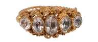 1. W A large Victorian oval giltwood and gesso girandole mirror the moulded frame with a pierced C-scroll cresting and a floral garland, the lower section with three S-scroll candlearms, height 170cm, width 110cm £400-£600