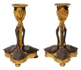 11. A pair of late Regency ormolu and patinated bronze candlesticks c.1835