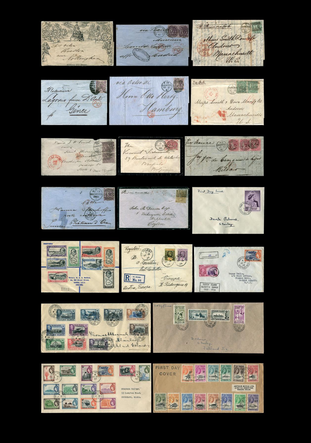 1949 UPU - good to superb used sets from 17 countries, Aden Seiyun, Bahrain, Bechuanaland, British Honduras, Ceylon, Falkland Islands, Grenada, Leeward Islands, Malaya States - Malacca, Negri Sembilan, Pahang, Perlis, Mauritius, Morocco Agenices - Tangier, Northern Rhodesia, Bahawalpur p13, Zanzibar plus 17 odd values not included in estimate. On stockbook pages. Total of 81 used stamps. Cat. £200 {CC} £125