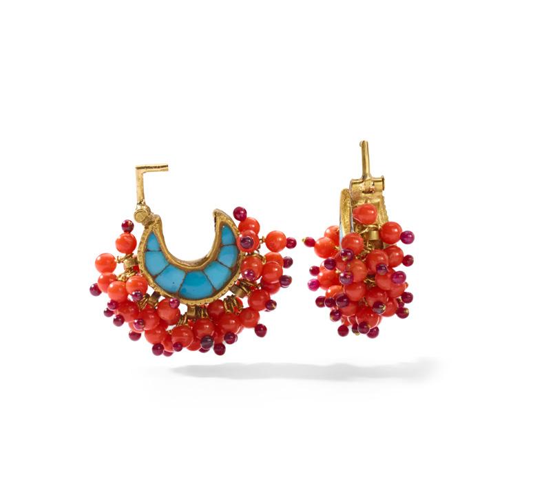 of single or double openwork crescent-shaped links with beadwork decoration,