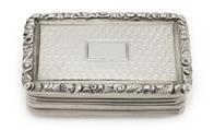 28. A George IV silver snuff box by Thomas Pepper II, London 1829, the whole with engine-turned decoration, and floral clasp, opening to reveal a gilt interior, width 8cm, depth 5.5cm, height 2cm, 2.95ozt £180-£220