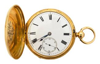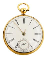 23. A George IV silver vinaigrette maker’s mark TS, Birmingham 1830, the lid with engraved initials ‘WC’, to engine-turned decoration, and a floral embossed clasp, opening to reveal a gilt interior, with a pierced grille depicting a book and quills amongst roses, width 4.7cm, depth 3cm, height 1cm, 1.24ozt £100-£150