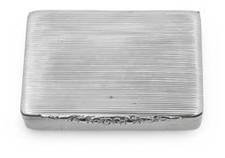 21. A George III silver vinaigrette and a Dutch silver snuff box the vinaigrette by William Boot, Birmingham 1805, the hinged lid with floral and foliate engraved decoration, to an engine turned border, opening to reveal a pierced grille with stylised flowers, and gilt interior, the Dutch snuff box with lion key mark, the hinged lid engraved with stylised flowers, to engineturned sides (2), the largest width, the vinaigrette 0.68ozt, the snuff box 1.17ozt