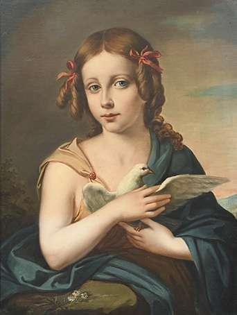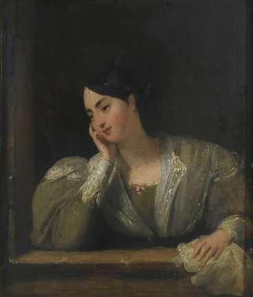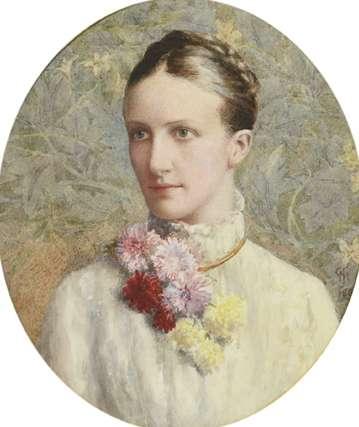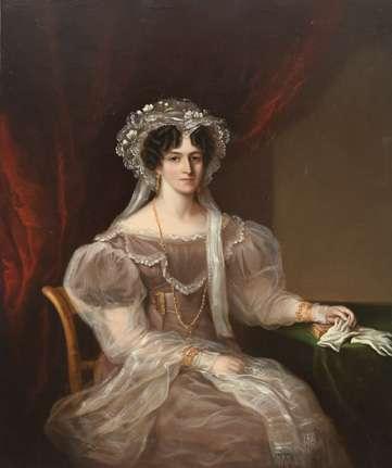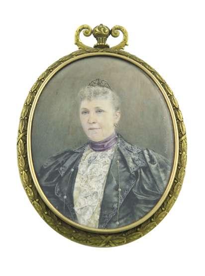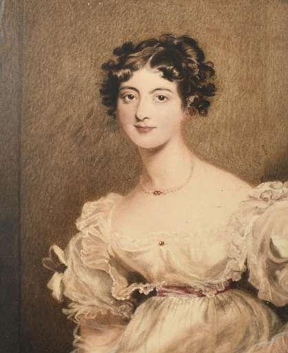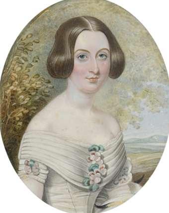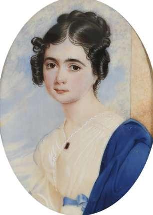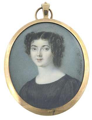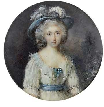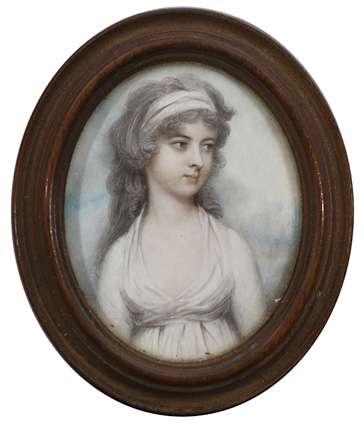 Portrait miniature of Miss C.B. Wynne wearing a white dress and bandeau