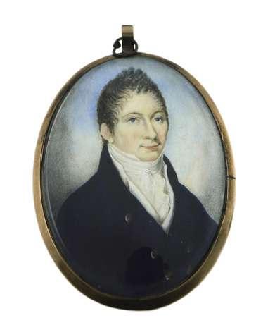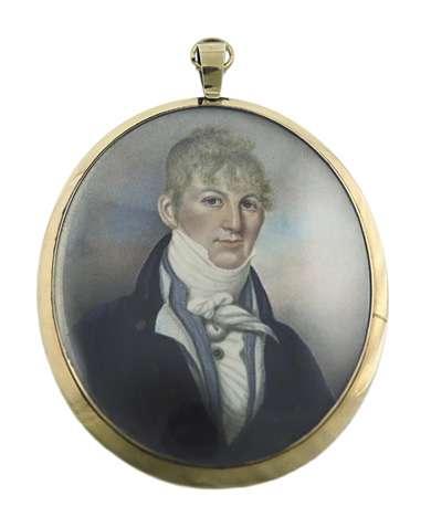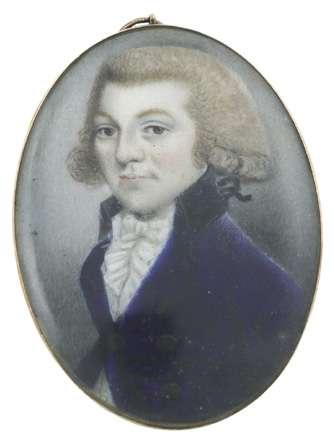 Portrait miniature of a gentleman wearing a blue coat and powdered wig