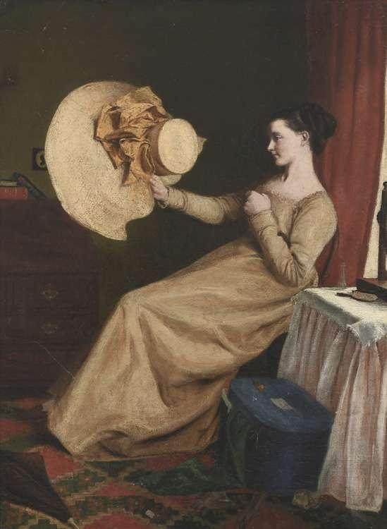 Portrait miniature of a lady wearing a red velvet hat with a feather, and a blue dress