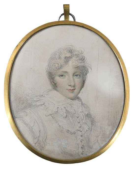 Portrait miniature of a boy in a blue jacket