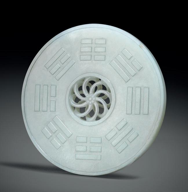 The Qianlong Emperor was himself obsessed with jade and wrote over 800 poems devoted to the subject. The subjects vary from Chinese jade, through ancient jade to old jade, and they considered design, motifs and carving, for example criticising workmanship. In 1976 the National Palace Museum in Taipei published ten volumes of Qianlong ’ s poetry, which makes his interest and dedication to the subject clear. The Emperor ’s personal intervention, plus the readily available supplies of good-quality nephrite and the perfected skills of palace craftsmen, make the mid-Qing period a golden time for jade carving. The collection of jades illustrated in this catalogue is indicative of products from this Golden Era.