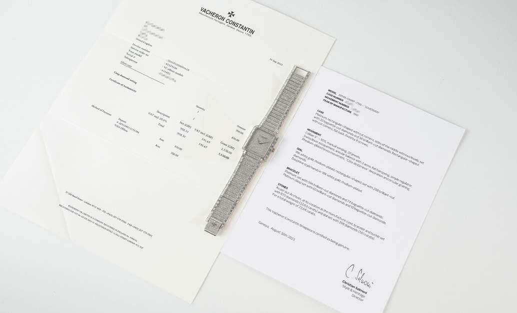 The Watch Register provides Watches of Knightsbridge with a due diligence service for every catalogue. This involves searching all items with an higher estimate value of £1,000 and above against their watch database (www.thewatchregister.com) to determine whether any item has been reported stolen or subject to claim.