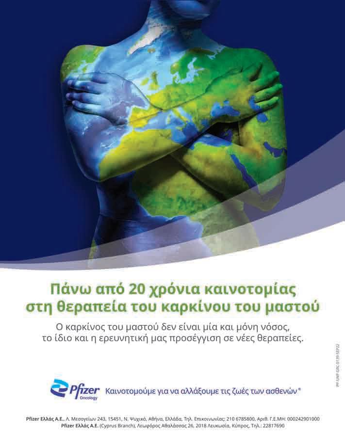 48 A.V. 6 - 12 OKTΩΒΡIου 2022 ΚαρΚίνος του μαςτου: ΕξΕλίξΕίς μΕ καίνοτομΕς ςτοχΕύούςΕς θΕραπΕίΕς μετατροπή του προχωρημένου καρκίνου του μαστού σε χρόνια πάθηση 22 καρκίνος του μαστού έχει εξε λιχθεί σε μείζον πρόβλημα δη μόσιας υγείας, καθώς αποτελεί παγκοσμίως τη συχνότερη μορφή καρ κίνου στις γυναίκες, στις οποίες και πα ραμένει η συχνότερη αιτία θανάτου. Η έρευνα στα πεδία της πρόληψης, της έ γκαιρης διάγνωσης και της θεραπείας του καρκίνου του μαστού έχει αναδειχθεί σε πρώτη προτεραιότητα παγκοσμίως. Τα θετικά αποτελέσματα της τεράστιας αλλά οργανωμένης προσπάθειας χιλιάδων ε ρευνητών και η κολοσσιαία δαπάνη οικονομικών πόρων είναι πλέον ορατά στην καθημερινή πρακτική. Εντυπωσιακές είναι σήμερα οι εξελίξεις στον καρκίνο μαστού, όπως και σε πολλούς άλλους τύπους καρκίνου. Είναι δεδομένο ότι η βελτίωση των δυνατοτήτων πρόλη ψης και έγκαιρης διάγνωσης καρκίνου μα στού, η ανίχνευση γενετικών παραγόντων που προδιαθέτουν σε καρκίνο μαστού, σε συνδυασμό με την ανάπτυξη δραστικών θεραπειών, έχουν πραγματικά αλλάξει τη διαχείριση και την πρόγνωση των ασθε νών αυτών, επισημαίνει η Έλενα Φούντζη λα , MD, PhD, παθολόγος-ογκολόγος, Κλι νική Άγιος Λουκάς, Θεσσαλονίκη, Clinical Associate Professor European University Cyprys, ακαδημαϊκός υπότροφος ΑΠΘ, Γενι κό Νοσοκομείο Παπανικολάου Έλεγχος της νόσου με τη χρήση καινοτόμων φαρμάκων Καινοτόμες στοχεύουσες θεραπείες επιτυγ χάνουν εντυπωσιακά αποτελέσματα σε μεγά λο ποσοστό ασθενών, φέρνοντας πιο κοντά την πραγματοποίηση του άπιαστου κάποτε στόχου για τις ασθενείς και τους επιστήμονες της μετατροπής του προχωρημένου καρκί νου του μαστού σε μία χρόνια πάθηση. Χαρακτηριστικό είναι το παράδειγμα των α ναστολέων των κυκλινοεξαρτώμενων κινα σών 4/6 (CDK4/6 inhibitors) που προστέθη καν στη φαρέτρα του παθολόγου ογκολόγου για τη θεραπεία ασθενών με προχωρημένο ορμονοευαίσθητο καρκίνο μαστού. Οι θερα πευτικοί αυτοί παράγοντες, οι οποίοι χορη γούνται με τη μορφή χαπιού, επιτυγχάνουν έλεγχο της νόσου για μεγάλο χρονικό διάστημα, ενώ ταυτόχρονα δεν επηρεάζουν την ποι ότητα ζωής των ασθενών, κάτι που είναι πολύ σημαντικό, καθώς λαμβάνονται ακόμη και για πολλά χρόνια. Αντίστοιχα, και άλλες από του στόματος χορηγούμενες θεραπείες (αναστο λείς του ενζύμου PARP) έχουν αλλάξει τη θε ραπευτική πρακτική σε ασθενείς με καρκίνο μαστού που έχουν κληρονομούμενες αλλα γές στα γονίδια BRCA1 ή BRCA2, τόσο στον προχωρημένο καρκίνο μαστού όσο και στον πρώιμο, σύμφωνα με μία πρόσφατη μελέτη. Τέλος, πρόσφατα, δημοσιεύτηκαν πολύ εν θαρρυντικά αποτελέσματα από τη χρήση και νοτόμων φαρμάκων που αποτελούνται από χημειοθεραπευτικές ουσίες συζευγμένες με αντισώματα έναντι της πρωτεΐνης HER2, η οποία είναι υπερεκφρασμένη στα καρκινικά κύτταρα επιλεγμένων ασθενών με καρκίνο μαστού. Όλα αυτά τα φάρμακα αποτελούν πολλά υποσχόμενες επιλογές της θεραπευτι κής φαρέτρας ασθενών με καρκίνο μαστού. Θεραπευτικές επιλογέςΕξατομικευμένη ογκολογία Θα πρέπει να τονιστεί ότι όλες αυτές οι ε γκεκριμένες θεραπείες είναι διαθέσιμες στη χώρα μας, δίνοντας την ευκαιρία στις ασθε νείς μας να ωφεληθούν από τη χρήση τους. Έχοντας λοιπόν συχνά πολλές θεραπευτικές επιλογές, είναι σημαντικό να έχουμε δεδομέ να ώστε να μπορούμε να επιλέξουμε σωστά τη θεραπευτική μας προσέγγιση για κάθε α σθενή με καρκίνο μαστού. Στα πλαίσια της εξατομικευμένης