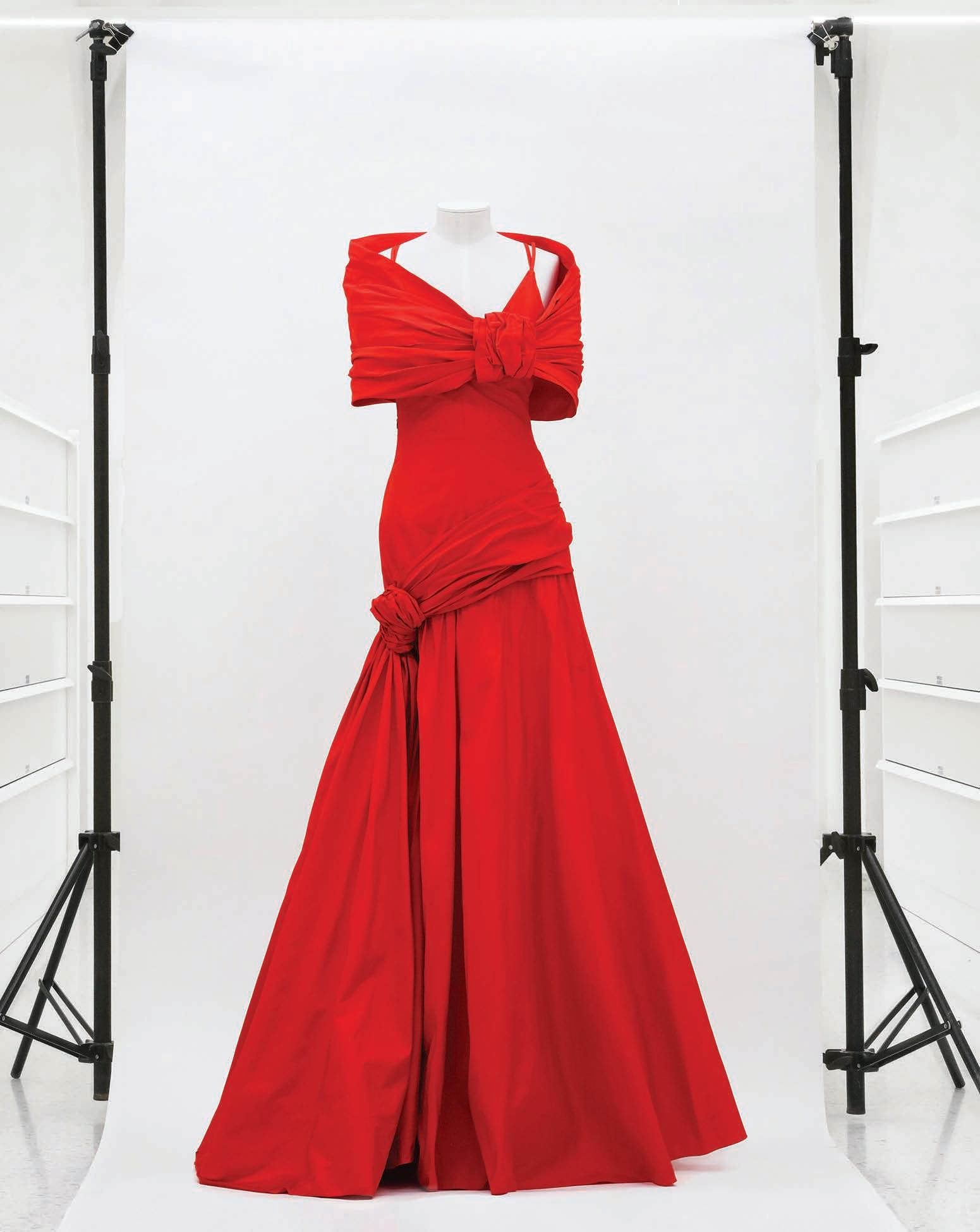 το κατακόκκινο φόρεμα εμφανίζεται με τον τίτλο «Fiesta». Υπάρχει μια φωτογραφία του σχεδιαστή στο ατελιέ του στη Via dei Condotti 11. Δημιουργίες της πρώτης του συλλογή είναι «πα ραταγμένες» στη μεγάλη κρεμάστρα μπροστά του, αλλά είναι το φόρεμα Fiesta