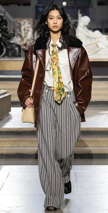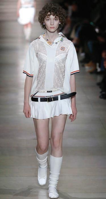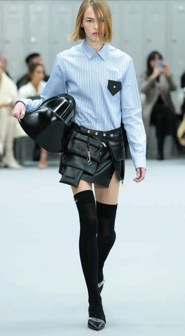 look επιστρέφει και κατακτά ξανά τις πα σαρέλες. Το μενού περι λαμβάνει όλα τα κλασικά κομμάτια: γραβάτες, μα θητικές φούστες και καρό κοστούμια. Αυτή τη φορά ωστόσο αποκτούν έναν πιο χαλαρό χαρακτήρα, με τους σχεδιαστές να δη μιουργούν νέες, ανατρε πτικές προτάσεις. Οι συ ντηρητικές πλισέ φούστες αντικαθιστούνται από τις micro mini διαδόχους τους, όπως είδαμε στον Miu Miu, ενώ τα κοστούμια συνδυάζονται με cop tops και sexy ψηλές κάλτσες, σύμφωνα με τον Chanel. Ο Loui Vuitton μας έδειξε το it αξεσουάρ της σεζόν, τη γραβάτα.