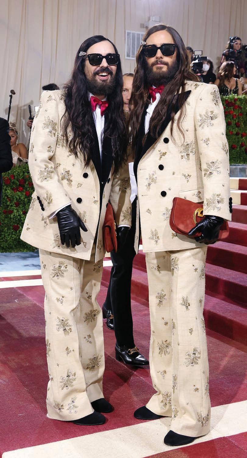 πανομοιότυπα ντυμένα και χτενι σμένα. Με μούσια και μακριά μαλλιά και οι δυο τους. Όμως ο Αλεσάντρο αποχώρησε και αποτελεί παρελθόν για τον Gucci. Δεν ξέρω αν ο Χάρι με τον Τζάρεντ είναι απαρηγόρητοι. Το θέμα είναι τι θα φορέσουν τώρα; O 49χρονος Μικέλε, σχεδιαστής με καταγωγή από τη Ρώμη, ο οποίος ανέλαβε την κορυφαία θέση το 2015, είχε συμβάλει καθοριστικά στη με ταμόρφωση του Gucci, φαινομενικά εν μία νυκτί, από ένα ξεθωριασμένο σύμβολο της γοητείας της δεκαετίας του ’80 σε έναν φορέα και πάροχο εκκεντρικής συμμετοχικότητας που ενσάρκωνε την ευρύτερη πολιτιστι κή συζήτηση γύρω από το φύλο, τη σεξουαλική ταυτότητα και τη φυλή. Το νέο του όραμα για το brand ταρακούνησε δημιουργικά τη βιομηχανία της μόδας και απέφερε δεκάδες δισεκατομμύρια δολάρια για τον γαλλι κό όμιλο πολυτελών προϊόντων Kering, στον οποίο ανήκουν επίσης οι Saint Laurent και Balenciaga, μεταξύ άλλων εμπορικών σημάτων. Ήταν η Gucci, ωστόσο, που απέφερε το μεγαλύτερο μέρος των κερδών του ομίλου, σχεδόν 10 δισεκατομμύρια ευρώ σε έσοδα το 2021 – και ήταν ο Μικέλε και ο διευθύνων σύμβουλος της Gucci, Μάρκο Μπιτσάρι, που πι στώθηκαν την επιτυχία. Πριν από ένα χρόνο πραγματοποίησε το πρώτο του ζωντανό σόου από τότε που ξεκίνησε η πανδημία, καταμεσής της Hollywood Boulevard, με τις Γκουίνεθ Πάλτροου, Ντακότα Τζόνσον και Μπιλι Έιλις (που συχνά φορούσε Gucci δημοσίως) frontrow και τον Τζά ρεντ Λέτο στην πασαρέλα. Ακόμα και στην τελευταία του επίδειξη