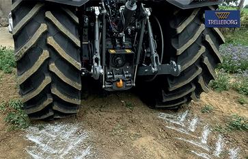 Thedemonstrationalsofeatured Trelleborg’s ProgressiveTraction® tread design: a key innovation engineered for both field grip and road comfort. Its dual-anchor lug system enhances traction in both vertical and horizontal directions, reducing slippage, improving fuel efficiency, and boosting operational performance, especially in soft or variable conditions. The Interlug system further enhances selfcleaning and stability.