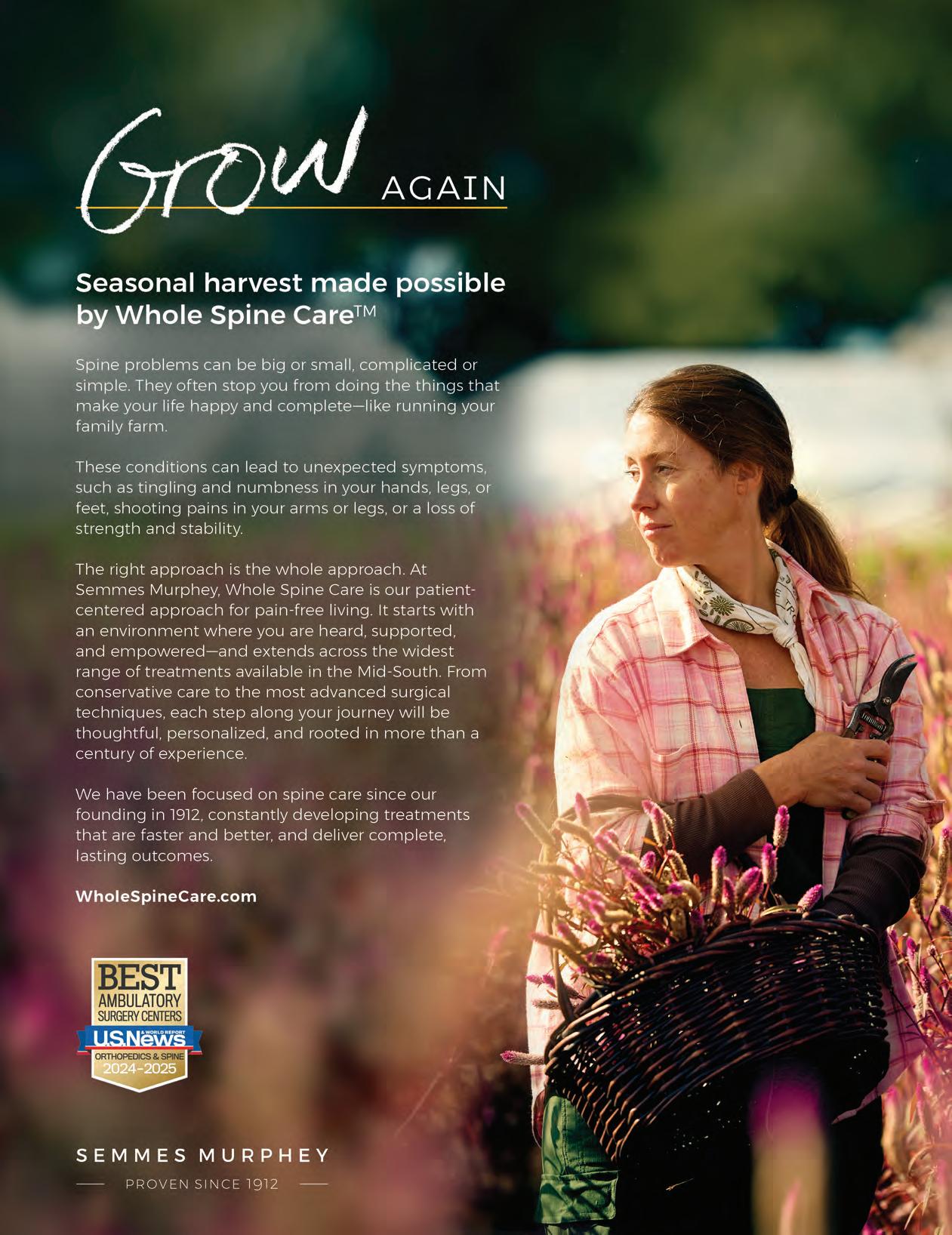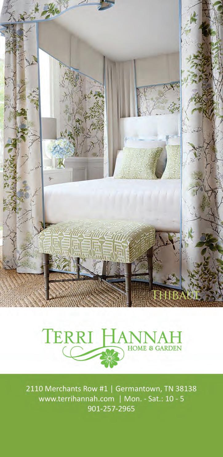 Call 901.684.4155 or subscribe at athomemms. com . Annual subscription rate: $19.95. Single copy price: $4.99. At Home Memphis & Mid South is published 12 times a year. Postmaster: Send address changes to At Home Memphis & Mid South , 7776 Farmington Blvd, #1321 Germantown TN 38183. We make every effort to correct factual mistakes or omissions in a timely and candid manner. Information can be forwarded to Trip Monger; At Home Memphis & Mid South , 7776 Farmington Blvd, #1321 Germantown TN 38183 or to tmonger@athomemms.com.