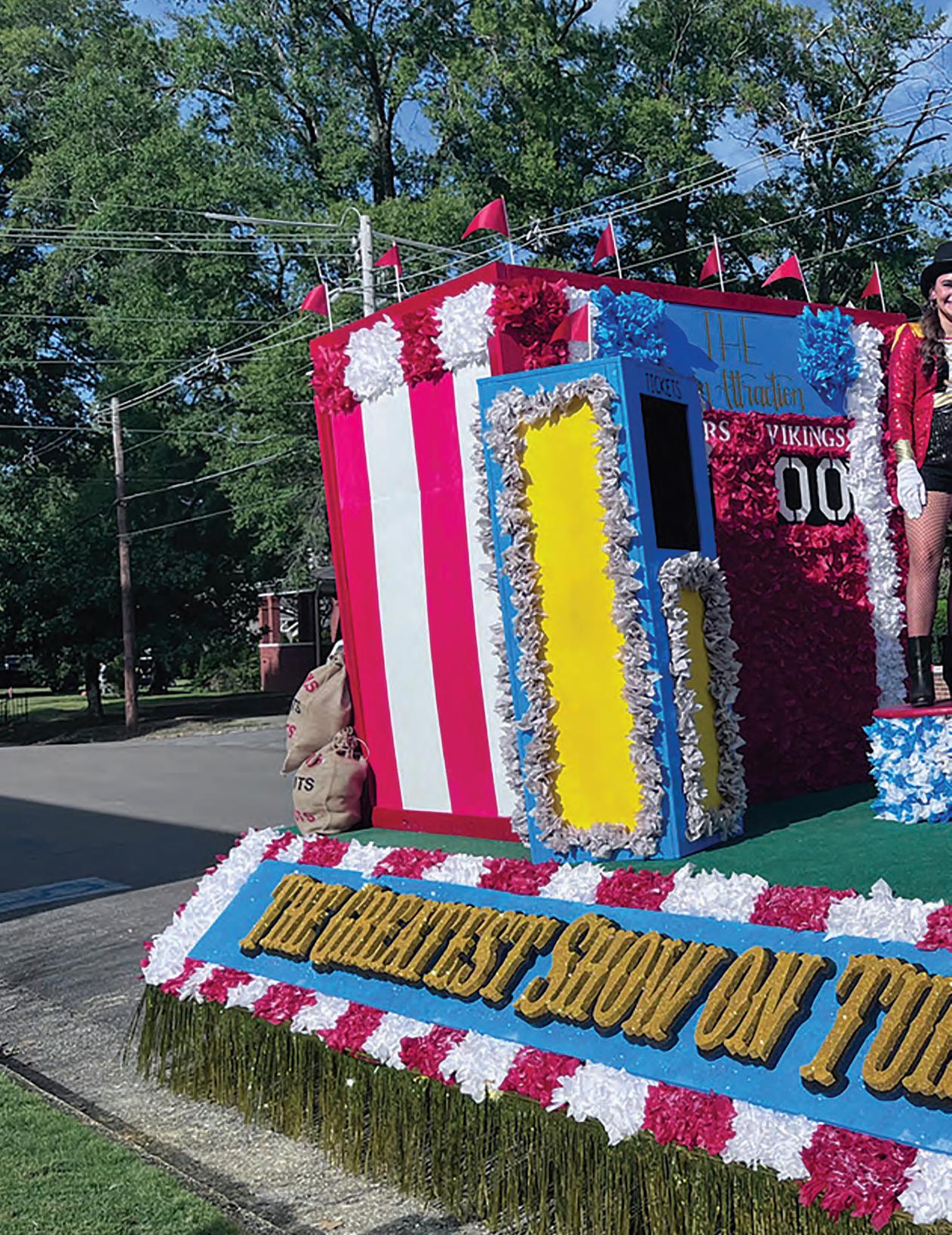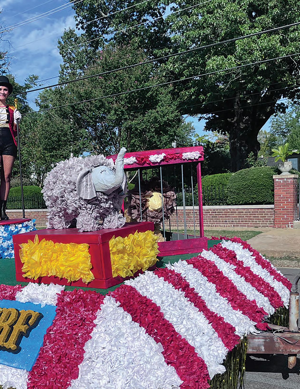 On parade day, decorated floats and cars line up—each one a product of creativity, teamwork and late-night building sessions. Students, sweethearts, maids and the Homecoming Court wave from atop the creations as sidewalks fill with proud parents, alumni, friends and neighbors. The floats themselves are more than pretty displays; they’re a labor of love. For generations, students and alumni alike have worked each year to construct the symbols of school spirit, all for the love of the parade.