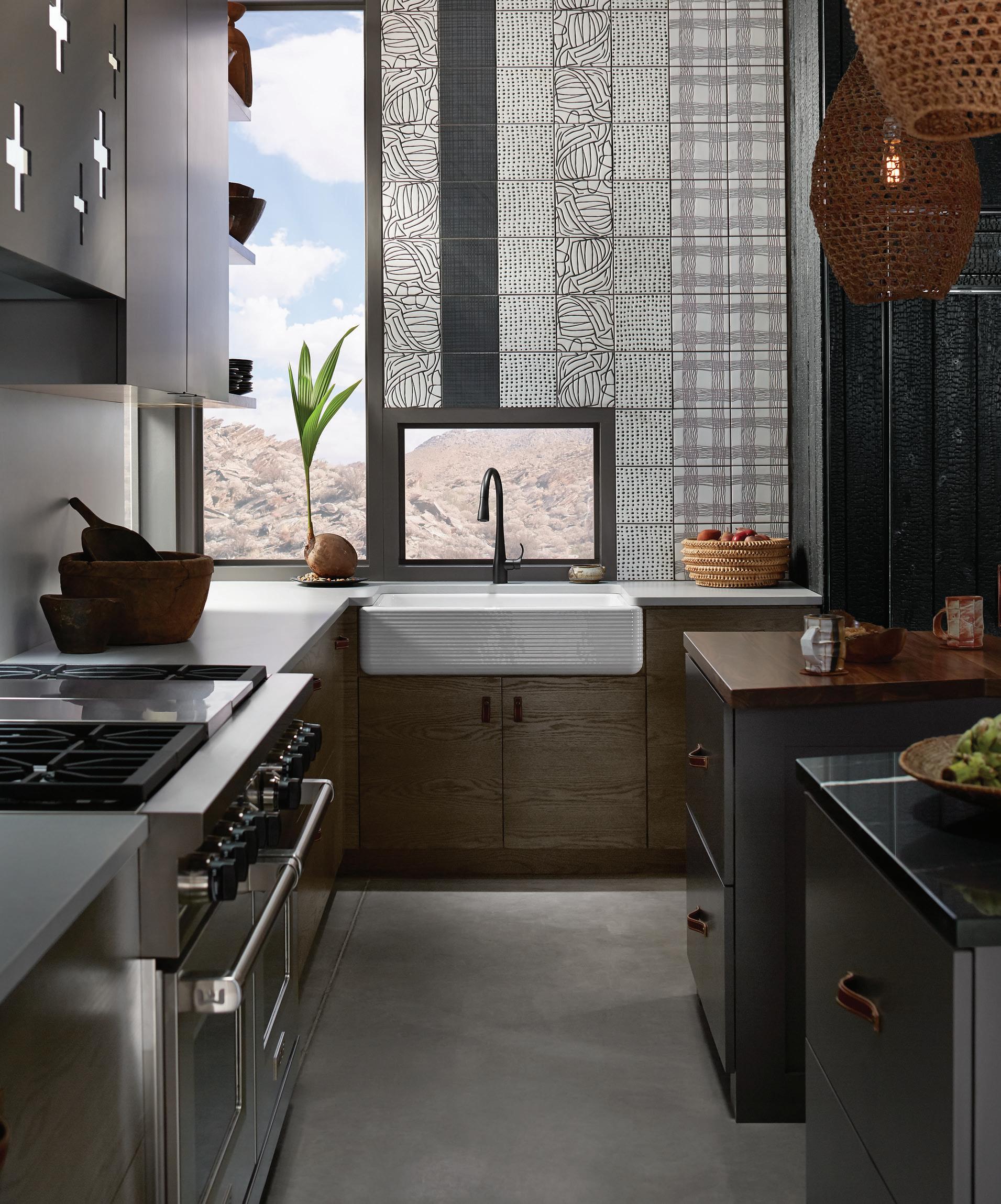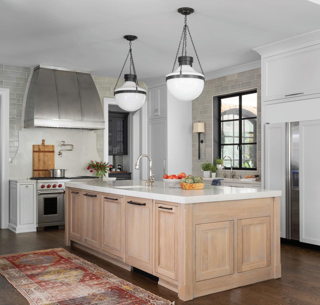 A renovation project strived to open up the kitchen area to create a bright and timeless aura. Textures were layered to contrast the clean lines of the metal windows and linear millwork.