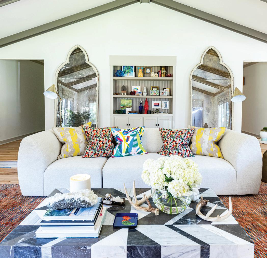 An upstairs loft features floating furnishings in the center of the room as well as ample lounging spaces and reading nooks. See “California Cool” at atlantahomesmag.com