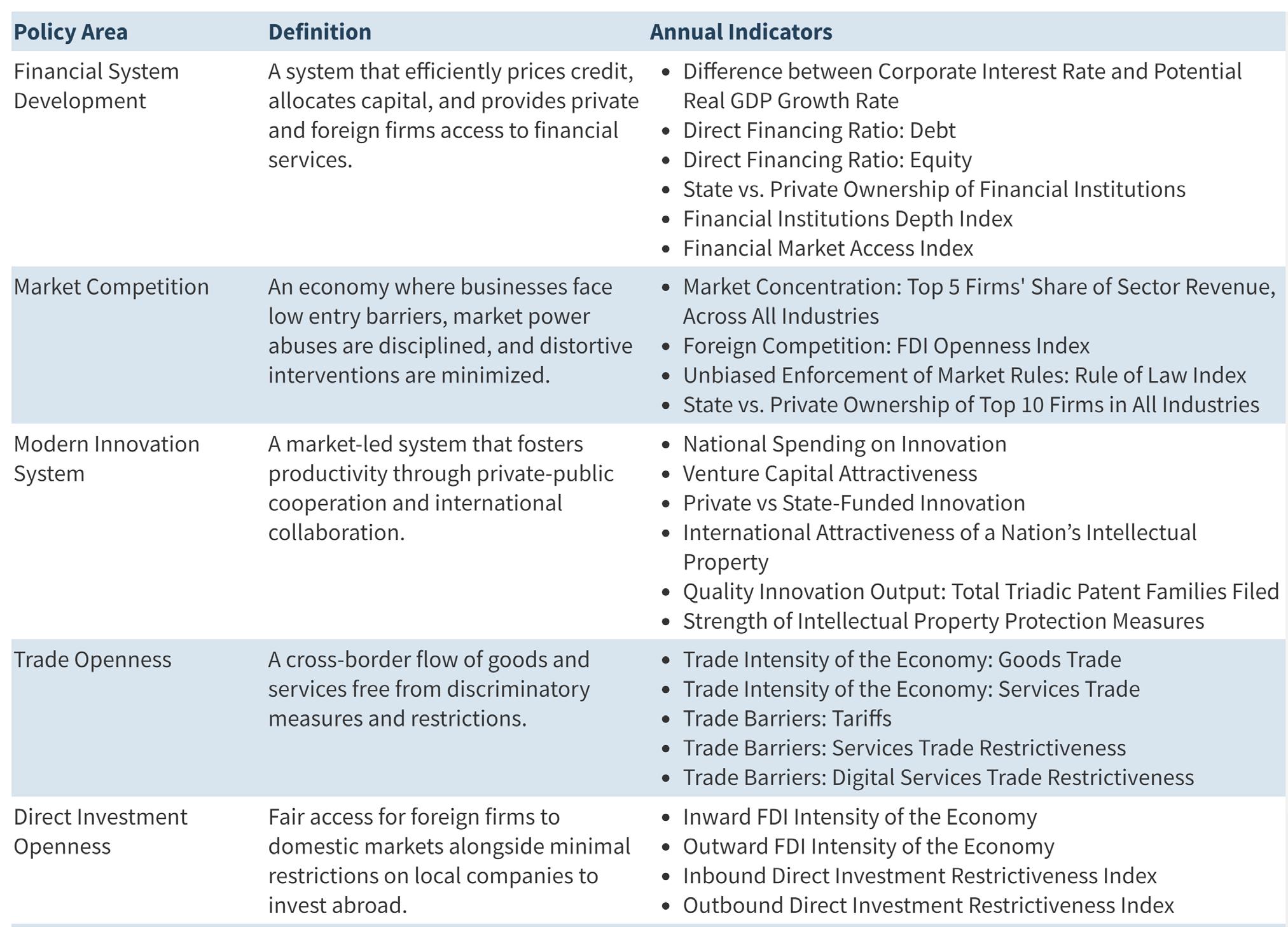 to advanced market economies. We do this with an evaluation framework reliant on data collection, synthesis, and analysis. We draw from many sources and series published by governments, international organizations, and nongovernmental organizations, as well as our own proprietary efforts. The quantitative findings in our reports have tracked the qualitative policy scene closely each year.