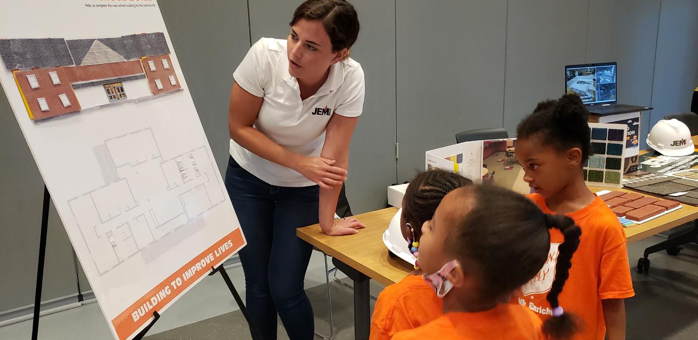 The Salvation Army hosts over 100 students annually in their Summer Youth Enrichment (SYE) Program. The program helps kids in danger of repeating a grade due to learning loss from the past school year so they may continue to advance. JEM Group participated in Career Day so kids could interact with the construction industry! The kids were able to handle sample building materials and then apply small cut outs to a sample Architectural Floor Plan to add building layers and add finishing touches!